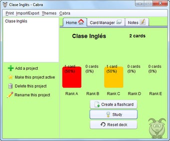 En Cabra, cada sesión de estudio se compone de una serie de tarjetas que constan de una pregunta, una respuesta y, opcionalmente, una imagen que ayuda a comprender mejor ambas. A medida que aciertes o falles, dichas tarjetas se irán clasificando por dificultad.